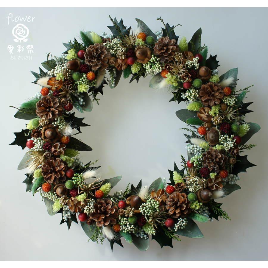 クリスマスリース ヒイラギの葉とユーカリの葉 明るい色の木の実やお花 葉はプリザーブド加工 ギフト プレゼント 誕生日 開店祝 引越し祝 Oxk30b 愛彩祭 フラワーリースのお店 通販 Yahoo ショッピング